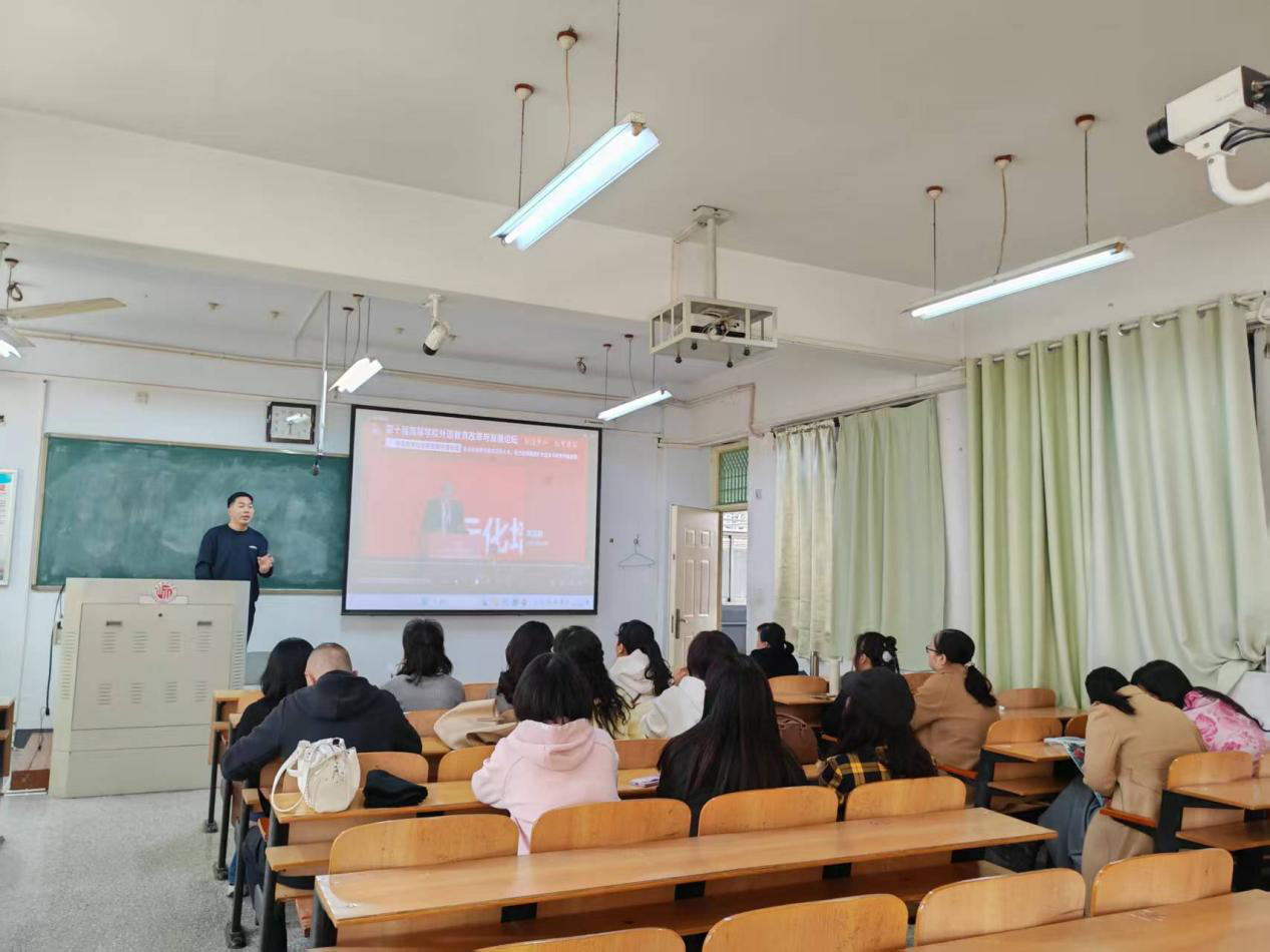 3月27日,英语专业全体教师于智圆楼217教室集中观看了西安外国语大学副董事长姜亚军教授的会议发言《构建外语教育自主知识体系:实践路径思考》以及河南广播电视台大象国际传播中心刘全亮总编辑的《数智赋能 融通中外——从大象国传实践看新时代涉外人才培养与外语教学创新》。姜亚军教授探讨了构建外语教育自主知识体系的实践路径。刘全亮总编辑提出涉外人才应具备“一核四能”素养,即以家国情怀与全球视野为核心,以语言实战能力、跨文化叙事能力、综合实务能力、数智媒介能力为支撑,为新时代外语教育改革提供了实务参考。集体学习结束后,与会教师围绕英语专业转型发展展开交流研讨,一致认为,作为学校特色优势师范专业和学院的传统优势专业,专业发展要坚持师范底色,既要做强“优势特色师范专业”,同时也积极拥抱多元化发展。在“多元发展”方面,英语专业将在坚守师范主业的基础上,积极拓展国际传播、教育技术、区域国别等跨学科发展方向。通过多元发展路径,实现师范性与应用性的有机统一,为基础教育输送更多“一专多能”的复合型英语团队。