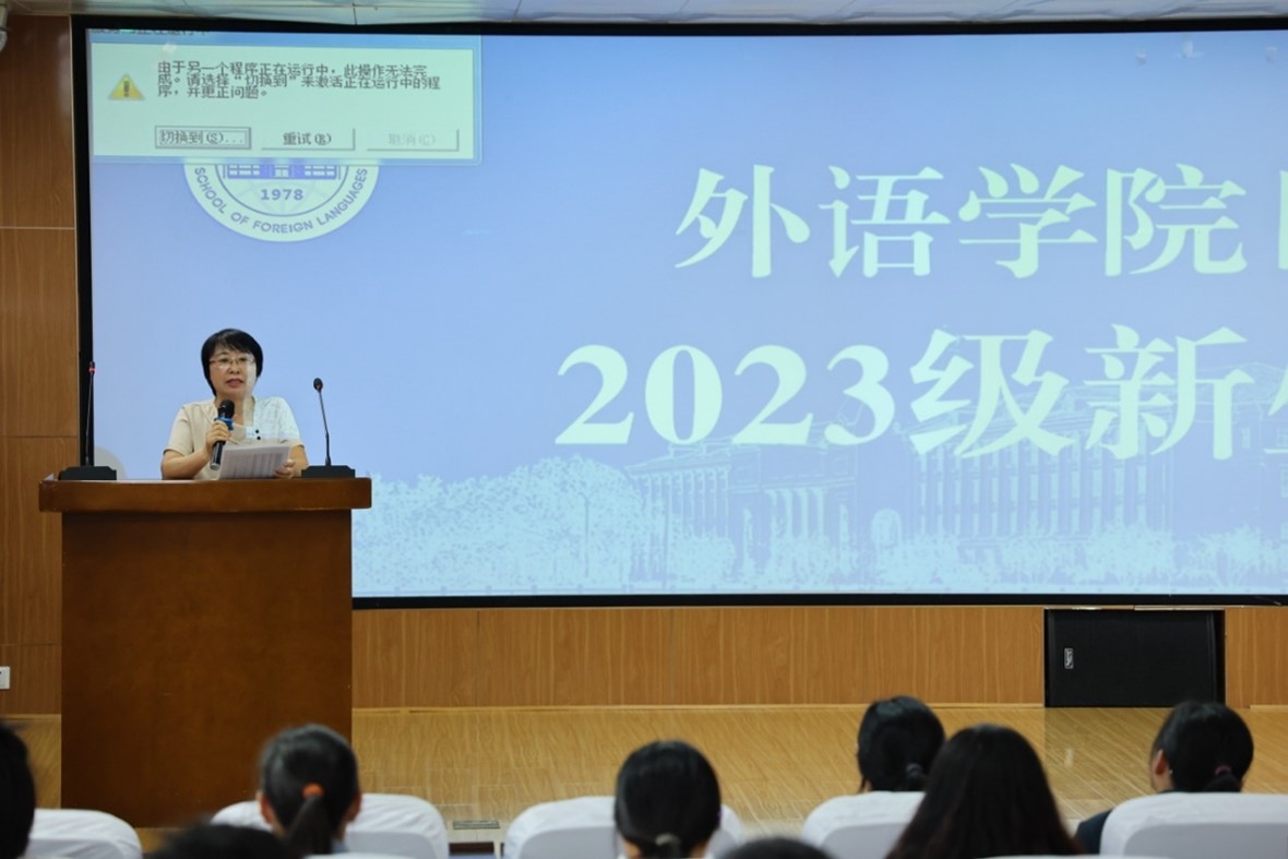 日语系主任金珽实老师做发言。她首先欢迎大家来到日语专业学习,就专业概况、团队力量、培养特色、课程设置、第二课堂、实践教学、发展前景等方面,向2023级新生们作了详细介绍。