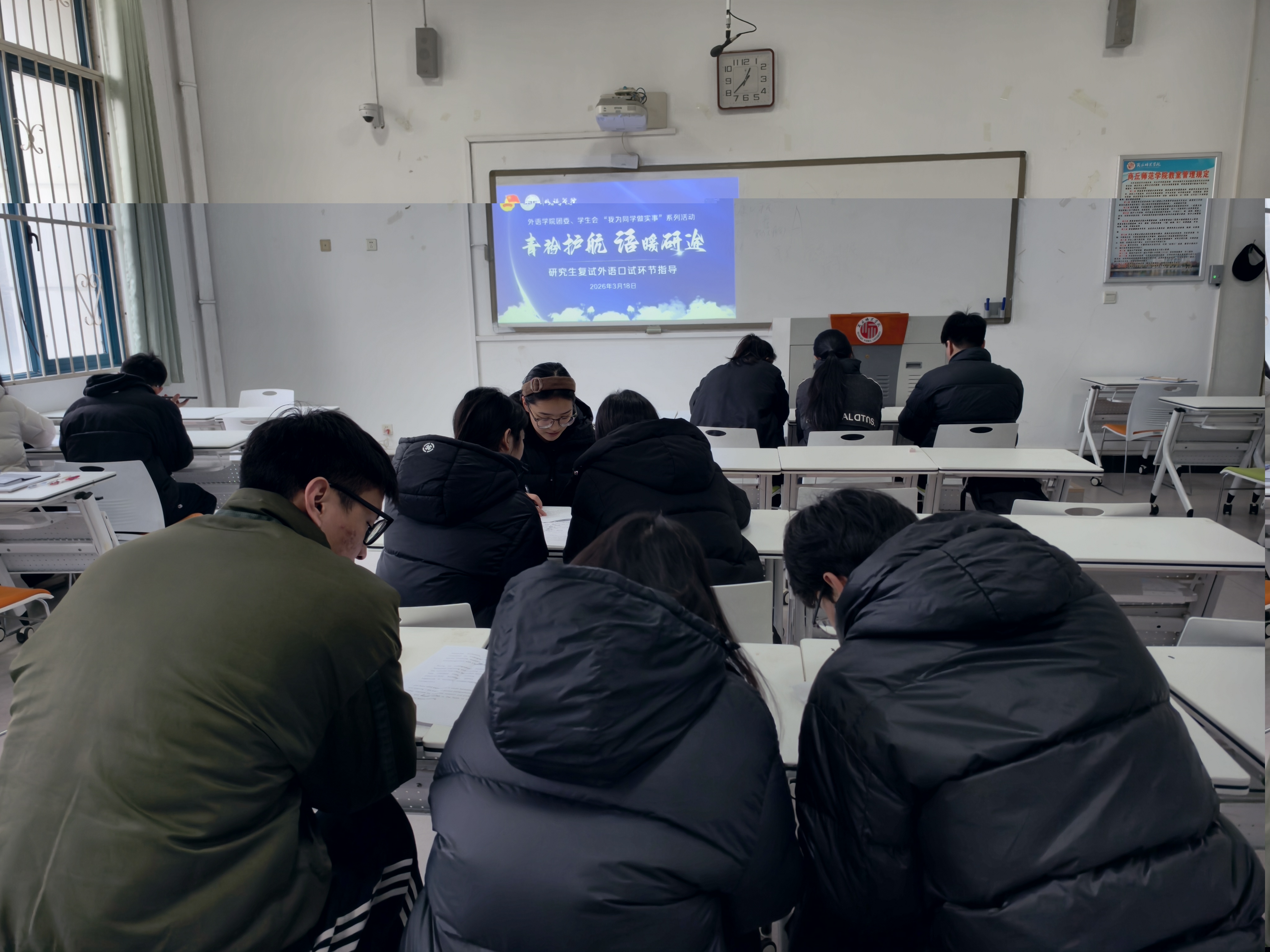 本次活动分为模拟外语自我介绍和模拟外语对话两个环节。在自我介绍环节,志愿者们分组对同学们进行细致辅导,针对每位同学的发音、语调、语速进行纠正,并对自我介绍稿的内容结构、用词表达提出润色建议,帮助大家提升表达的准确性和感染力。在模拟对话环节,志愿者们与同学们进行全外语互动交流,模拟复试中可能出现的提问场景,锻炼同学们的口语反应能力和表达能力,并及时纠正表达中的语法和用词错误,增强应试信心。活动现场气氛热烈,同学们积极参与,纷纷表示此次指导针对性强、实用性好,有效缓解了他们在复试口语方面的焦虑。