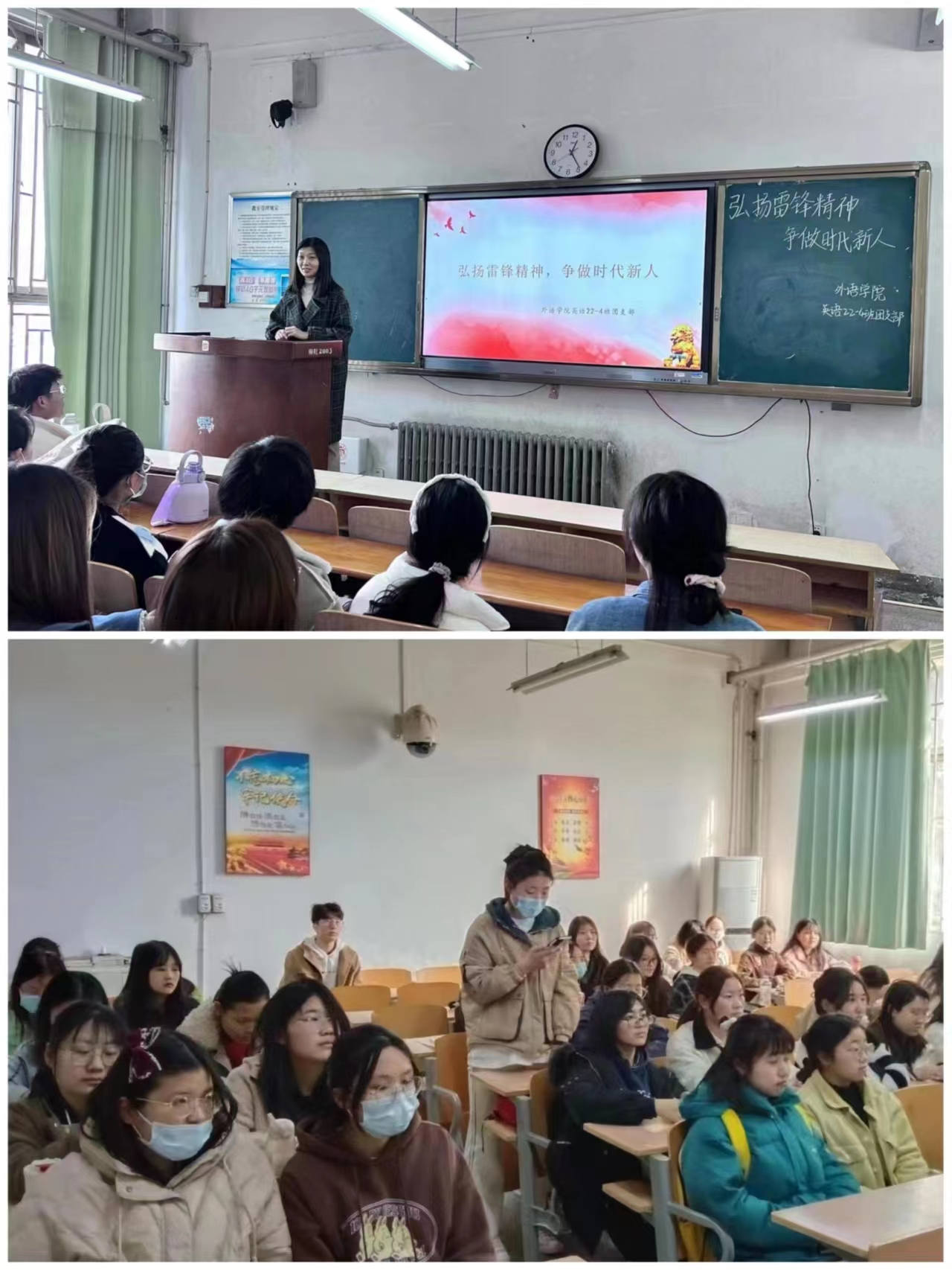 各团支部组织开展了主题鲜明、形式多样、内容丰富的主题团日活动,院团委书记赵蕊参加活动并进行指导,英语22-4班团支部通过组织同学们观看学习雷锋同志的视频和讲述雷锋同志的故事,从三个方面深刻领会了什么是雷锋精神、雷锋精神的实质和内涵是什么以及当代老员工应如何去传承和弘扬雷锋精神。活动中广大团员青年还积极分享了自己的心得体会。