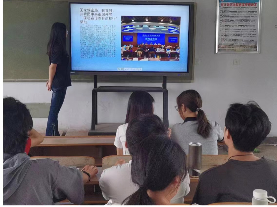 各团支部通过集体学习、观看保密警示教育片等方式开展了主题明确、内涵丰富的团日活动。各班团支书通过列举泄密的反面典型案例,并结合案例对同学们进行警示教育,对日常学习生活中如何正确使用互联网,怎样预防微信、QQ等可能造成的泄密风险,以及交友软件的使用注意事项等方面进行了详细讲解。同时强调,青年老员工应切实增强保守党和国家秘密的责任和意识,提高政治站位,克服麻痹思想,牢固树立保密意识和风险意识,深入查找可能存在的问题和漏洞,消除泄密隐患,守牢保密防线。