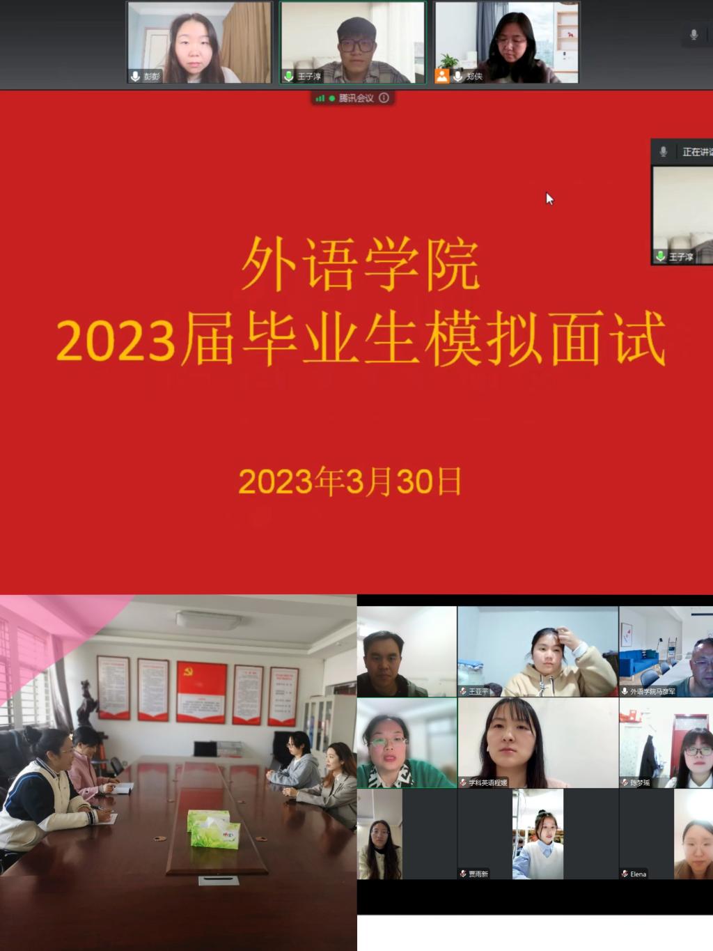 为帮助2023届考研员工熟悉考研面试流程,增强信心,进一步提高考研录取成功率,bv1946伟德副经理杨静教授带领各专业方向教师,成立了考研面试指导工作组,根据员工的报考专业,于3月30日下午到晚上,分英语语言文学与外国语言学及应用语言学、学科教学与跨专业、翻译和日语四个组别,采用线上线下相结合的方式,对2023届初试上线员工进行了针对性的考研面试指导。