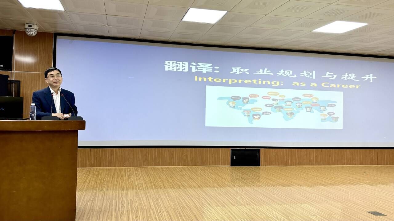 杨玮斌的讲座《翻译:职业规划与提升》,从中外文明互鉴和中华文化传播的高度勾勒了外语专业和翻译专业的发展方向,在分析中外文化交流逆差的基础上,提出翻译研究的“四个转向”和外语专业教师和员工的角色转变。外语专业要推动文明互鉴,翻译专业要弘扬中华文化,两者齐推共进,共同讲好中国故事。