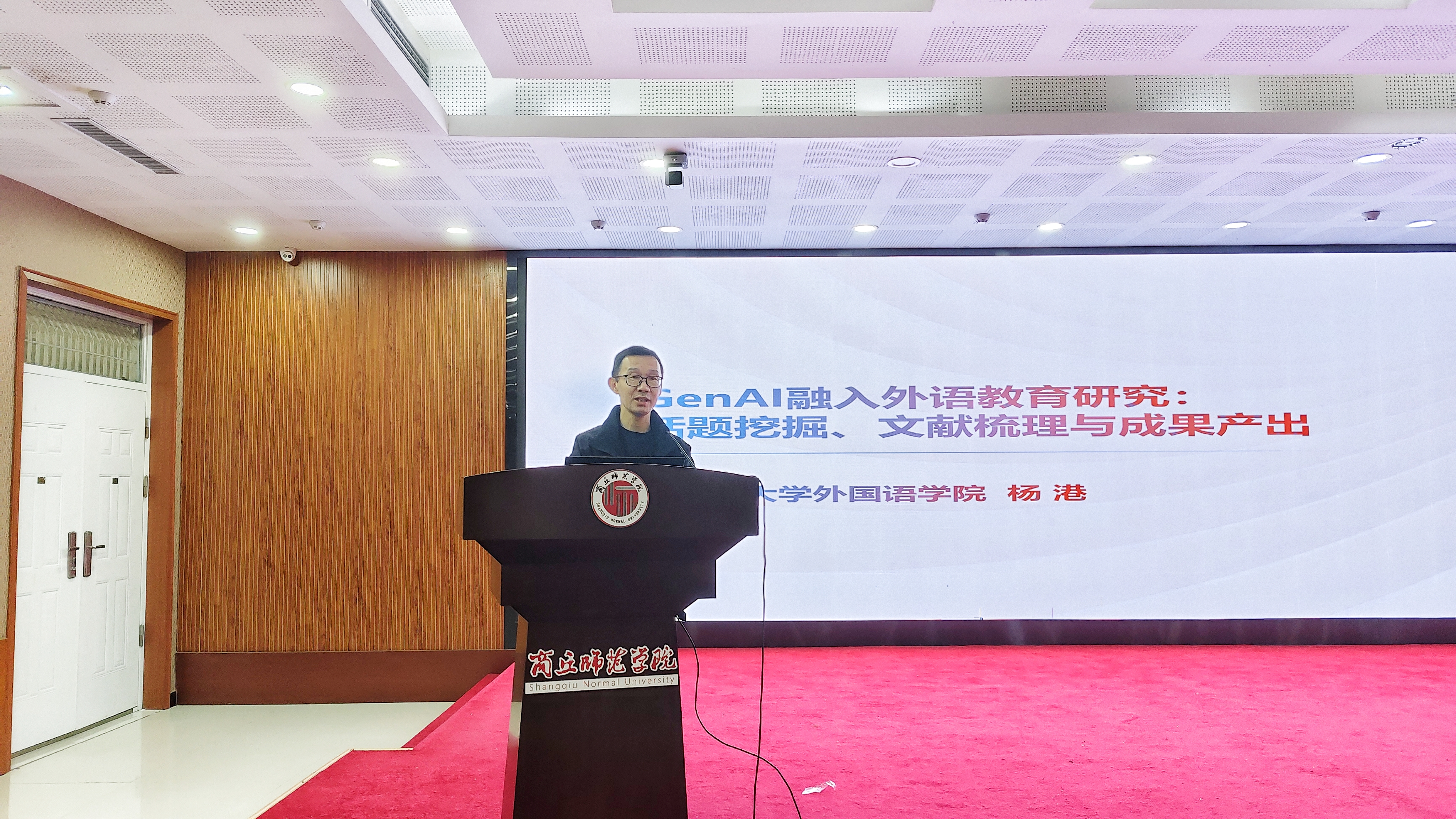 讲座中,杨港博士以“GenAI如何深度嵌入外语学术全流程”为核心主线,分四个板块展开了系统且应用性强的分享:他先从“AI融入外语教育的热点话题”切入,剖析并阐明当前学科领域的技术融合趋势;随后依次聚焦“AI助力文献检索”“AI辅助课题申请”“AI优化论文写作”三大实操环节,结合外语学科的真实案例,拆解了GenAI在“清晰勾勒学术脉络”“科学设计课题论证”“提升论文写作质量”等方面的具体方法——从文献关键词的精准筛选,到课题框架的逻辑搭建,再到论文语言的润色优化,每一个环节都既有技术工具的使用指南,又有学术规范的细节提醒,内容贴合师生日常研究痛点。