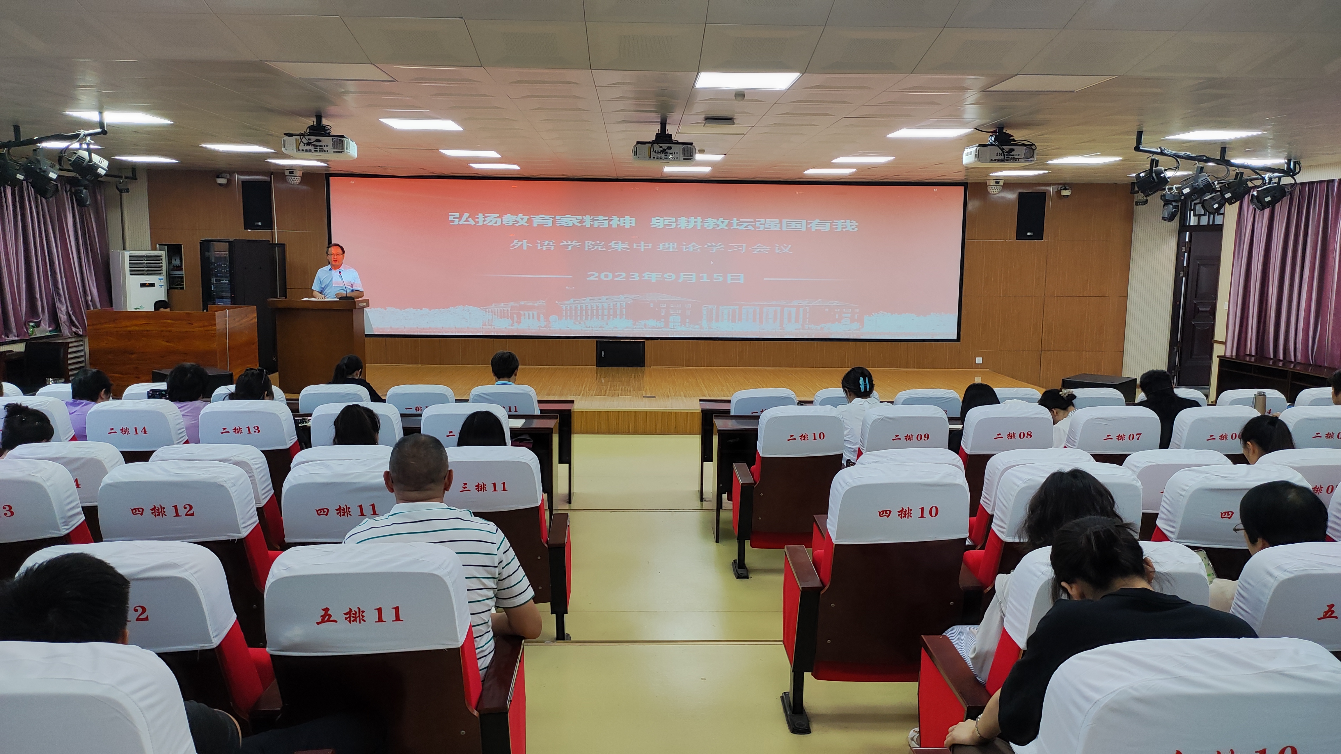 9月15日下午,bv1946伟德智圆楼219报告厅召开集中政治理论学习例会,专题围绕习近平总书记提出的“教育家精神”进行专题学习宣讲。会议由党委书记韩坤主持,学院领导班子成员、全体教职工参加。