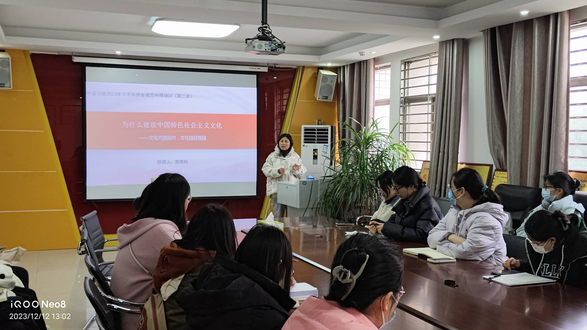 为了增强文化自信,弘扬中国特色社会主义文化,bv1946伟德于12月12日中午在应天楼214会议室开展了以“为什么建设中国特色社会主义文化”为主题的2023年下半年(第18期)预备党员中期培训(第三讲)。本次培训由员工第四党支部书记常素枝主讲,bv1946伟德全体应参训预备党员参加。