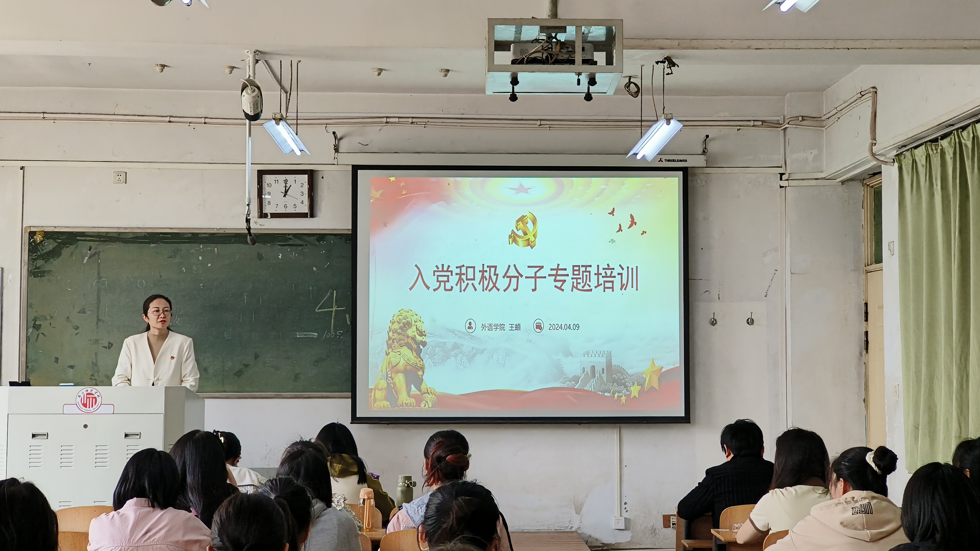 王頔从“思想正视要上去,充分认识入党积极分子培训班的重要意义”“入党条件要满足,力争早日加入光荣的中国共产党党员行列”“内容重点要把准,持续保持入党积极分子培训班的教育效果”三个部分进行讲解。她指出,入党动机纯不纯是入党的首要条件,而能力素质强不强则是入党的必要条件,强调入党积极分子要在思想上旗帜鲜明、学习上守正创新、工作上模范带头、生活上严于律己,时刻反思自己在党性修养上的差距,在不足之处下工夫,坚持不懈,积极进取,争取早日成为一名合格的共产党员。