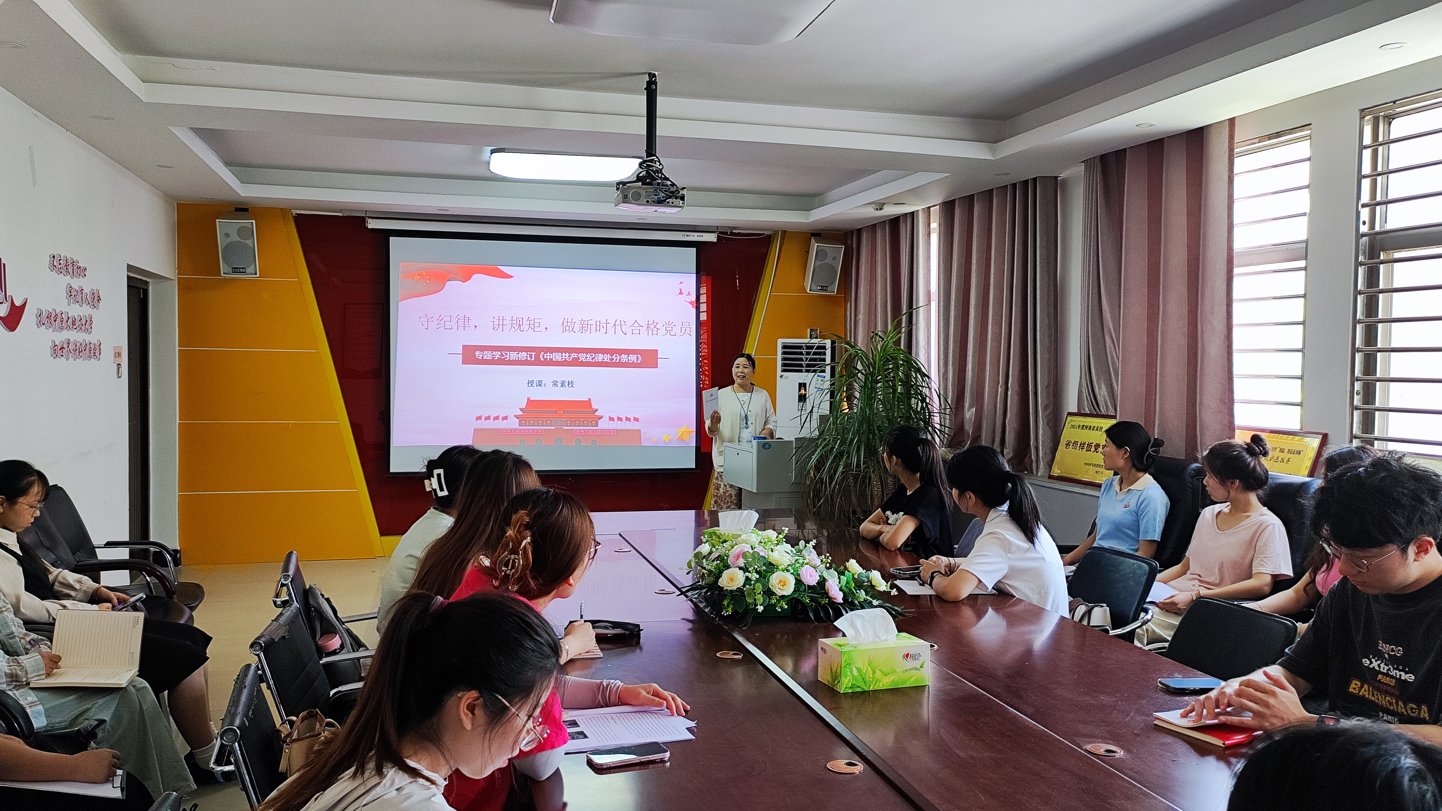 为切实提高员工党员的自律意识,5月23日中午,bv1946伟德员工第四党支部书记常素枝在应天楼214会议室讲授了《守纪律,讲规矩,做新时代合格党员》专题党课,并组织预备党员学习了新修订的《中国共产党纪律处分条例》。