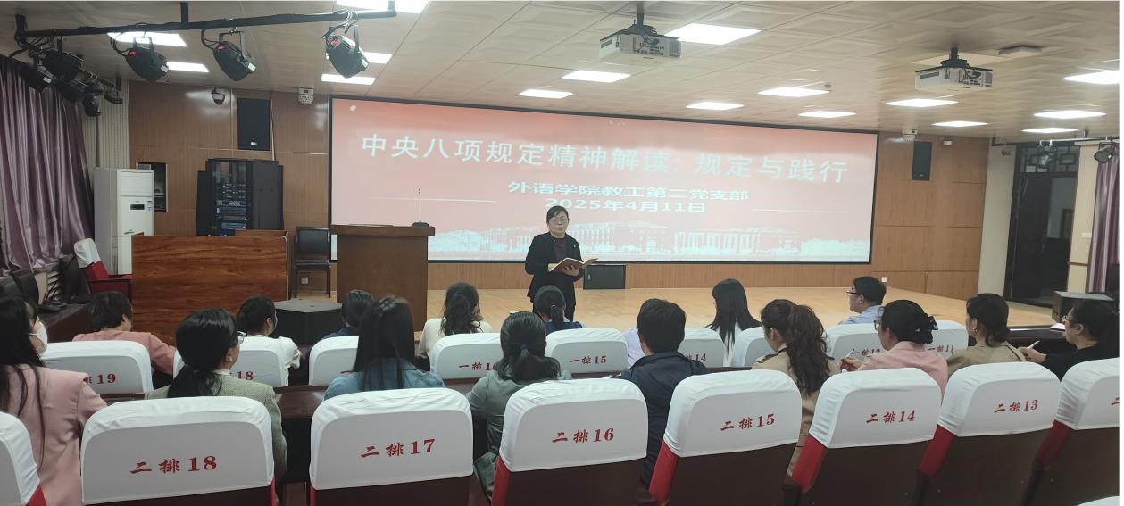 为深入贯彻落实全面从严治党要求,强化党员教师的纪律意识和作风建设,2025年4月11日下午,bv1946伟德教师第二党支部书记刘敏在智圆楼219多功能厅为支部全体党员教师做了一场题为“中央八项规定精神解读” 的专题党课,引发了党员教师们的热烈讨论与深入思考。