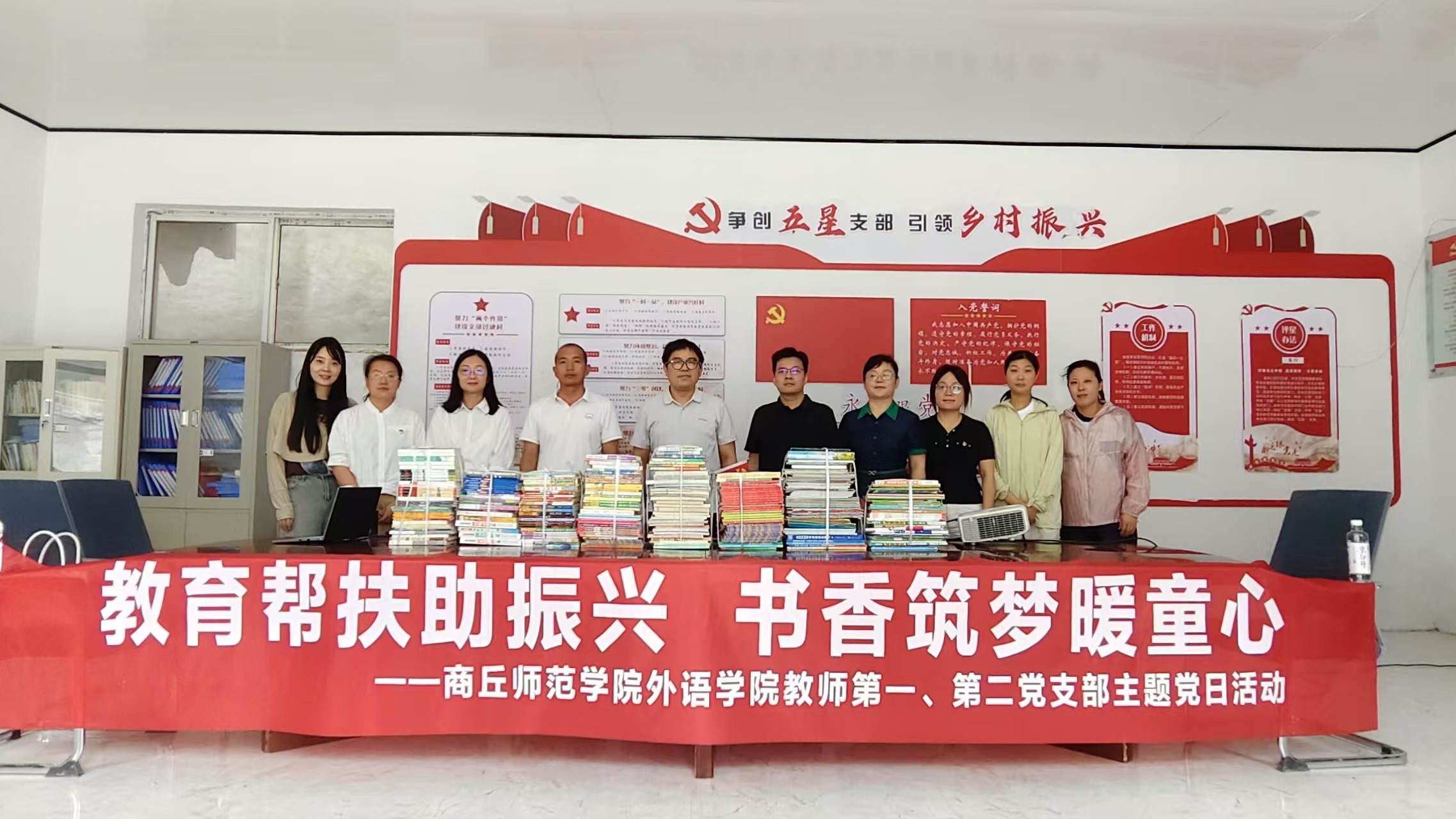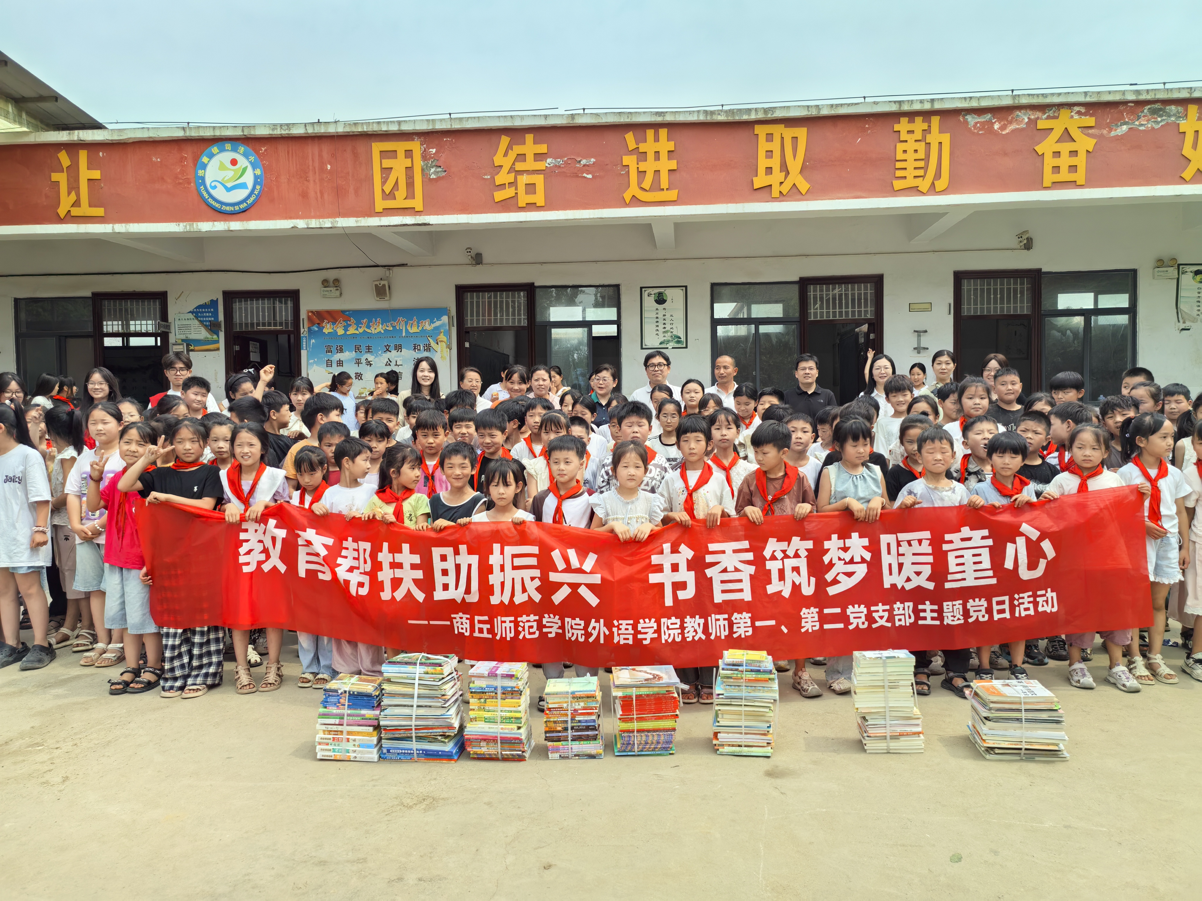 为深入贯彻落实乡村振兴战略,充分发挥基层党组织的战斗堡垒作用和党员教师的先锋模范作用,6月10日,bv1946伟德教师第一、第二党支部部分党员代表在党委书记朱震杰、党委副书记王頔的带领下走进柘城县司洼村,联合开展 “教育帮扶助振兴,书香筑梦暖童心” 主题党日活动,以实际行动助力乡村教育事业发展。