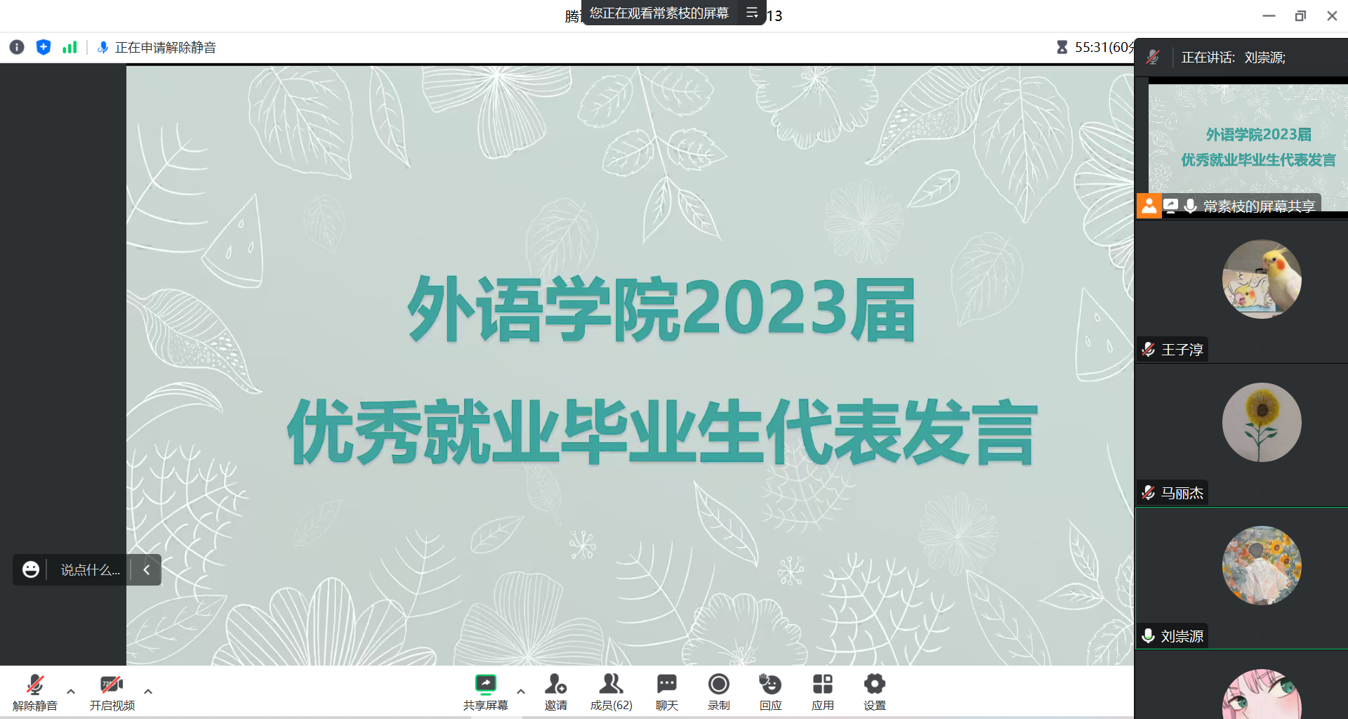 毕业班班主任代表分别进行了发言,他们希望同学们要树立正确的择业观,理性认清自身能力与就业期待,先就业再择业,不断积累工作经验。