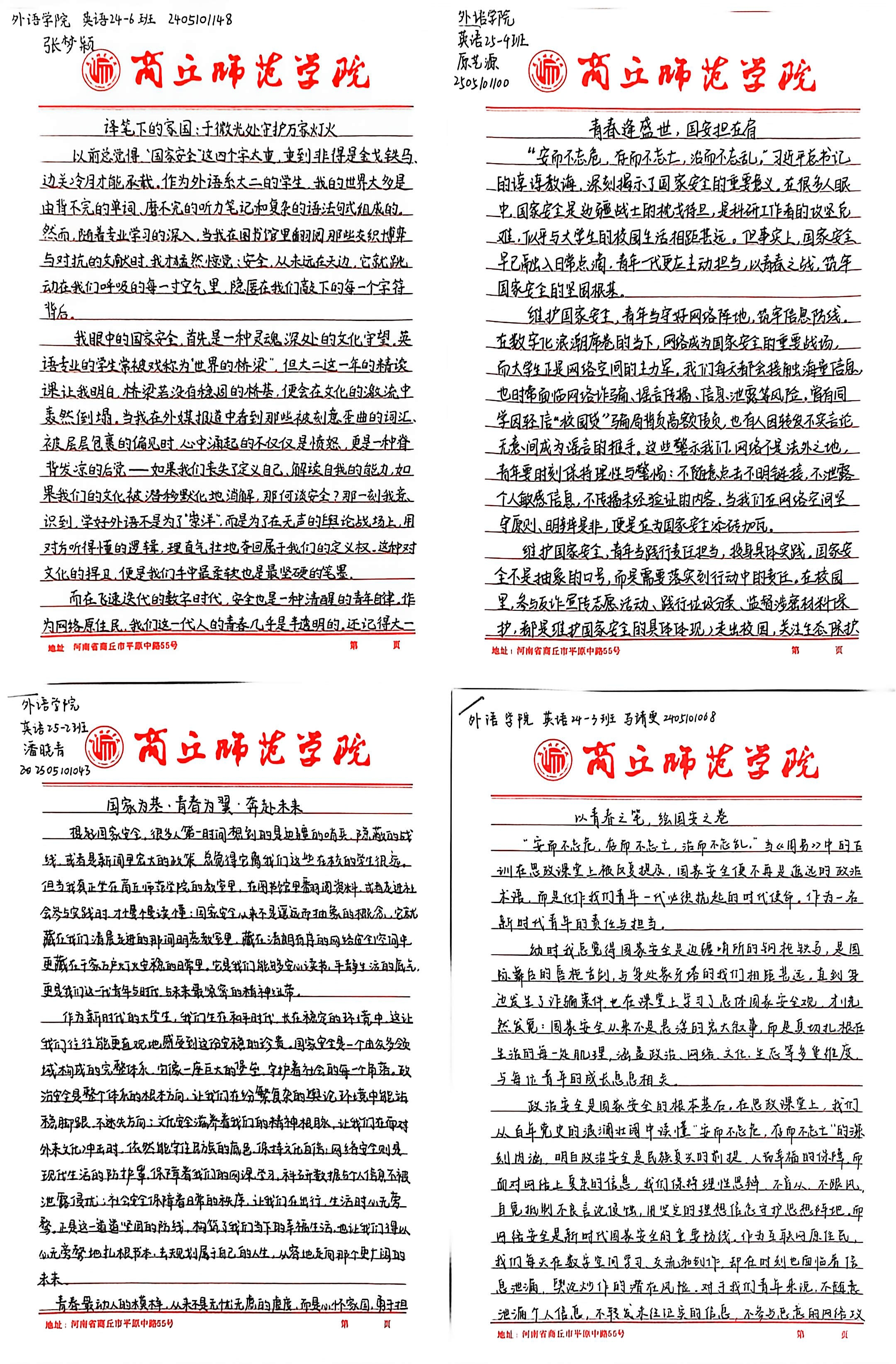 比赛以“我眼中的国家安全”为主题,鼓励同学们结合学习生活实际,从政治安全、网络安全、文化安全、生态安全等不同维度,讲述对国家安全的观察与理解,分享维护国家安全的青春担当。全院员工踊跃参与,用文字传递安全理念,凝聚安全共识,在文字创作中进一步加深了对总体国家安全观的认识,展现了新时代青年学子守护国家的责任与情怀。
