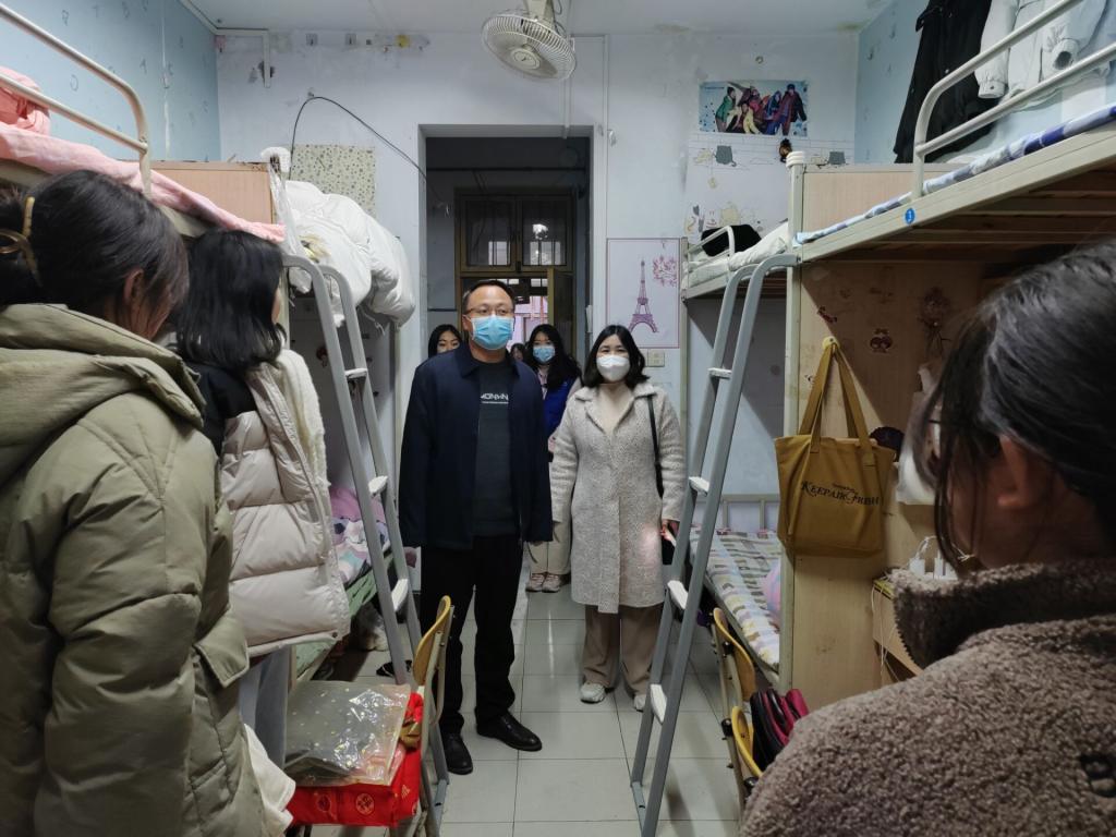 接着来到员工宿舍走访看望返校的同学们,并进行亲切的交谈,了解员工的学习和生活状况,排查安全隐患,提醒同学们注意用电防火等宿舍安全问题;叮嘱同学们当下要保持良好个人习惯,做好自己的健康第一责任人;同时勉励大家在新学期做好规划、认真学习、乐观生活,以饱满的热情迎接新的学期。党委书记韩坤还特意走访了毕业生宿舍,询问了他们的求职情况以及今后目标,提醒他们要好好准备毕业论文,充分利用好最后一个学期。