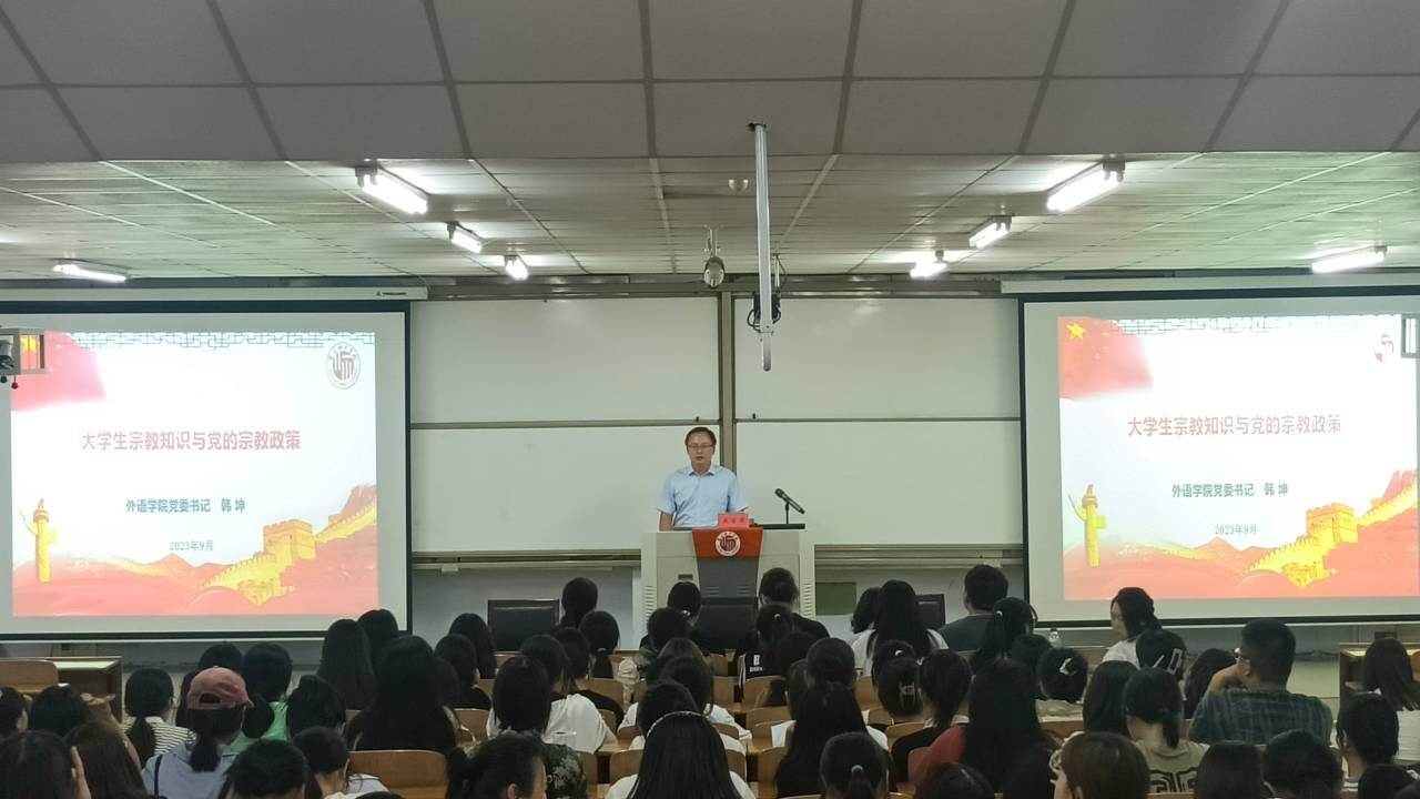 为加强2023级新生的宗教政策法规专题教育,帮助员工树立马克思主义宗教观,9月15日晚,公司党委书记韩坤于智圆楼208教室为2023级全体新生讲授“老员工宗教知识与党的宗教政策”专题思政课。