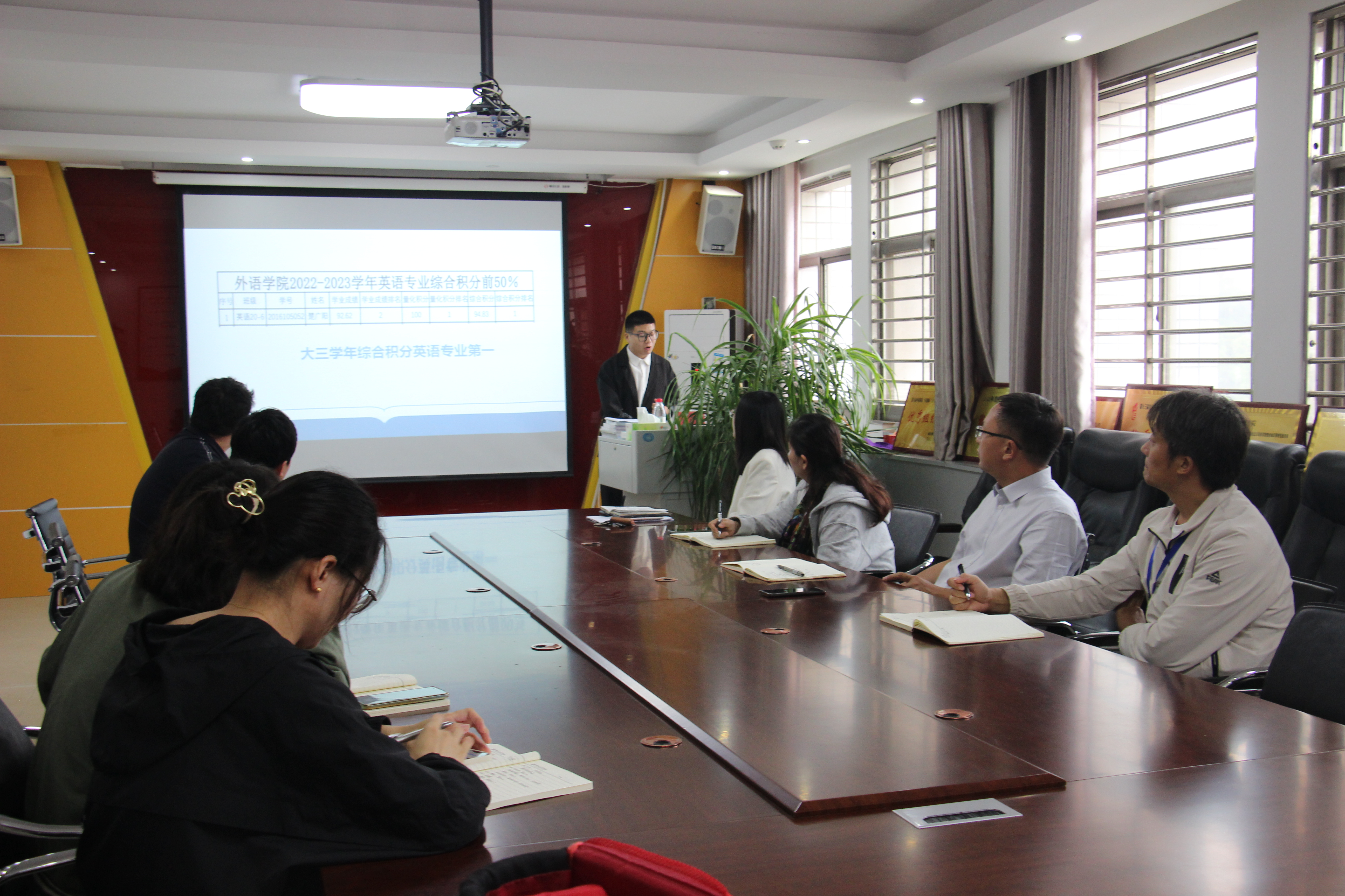 经过前期初选和个人申请,共有六位同学进入学院评审环节并进行了现场答辩。会上,六位同学用心准备,精彩展示,根据自己的思想表现、学业成绩、荣誉奖项、社会服务等全方位地进行风采展示,同时也对未来的学习、生活做出科学明晰的规划,展现出外院学子积极进取的良好精神风貌和勤学奋斗的浓厚学习氛围。