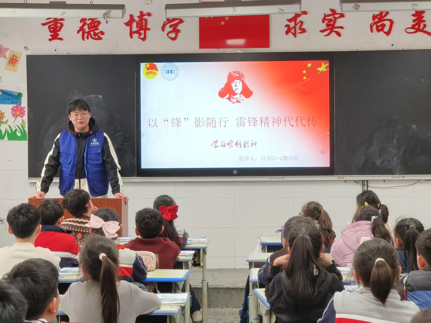 此次主题宣讲活动,为小员工们学习雷锋精神注入了新的动力和活力,让雷锋精神在心中生根发芽,激励着他们成长为新时代好少年。同时,此次活动的开展也是bv1946伟德深入学习宣传贯彻党的二十届三中全会精神,践行社会主义核心价值观的具体举措,不仅弘扬了新时代雷锋精神,更展现了外院学子良好的精神风貌和社会责任感。