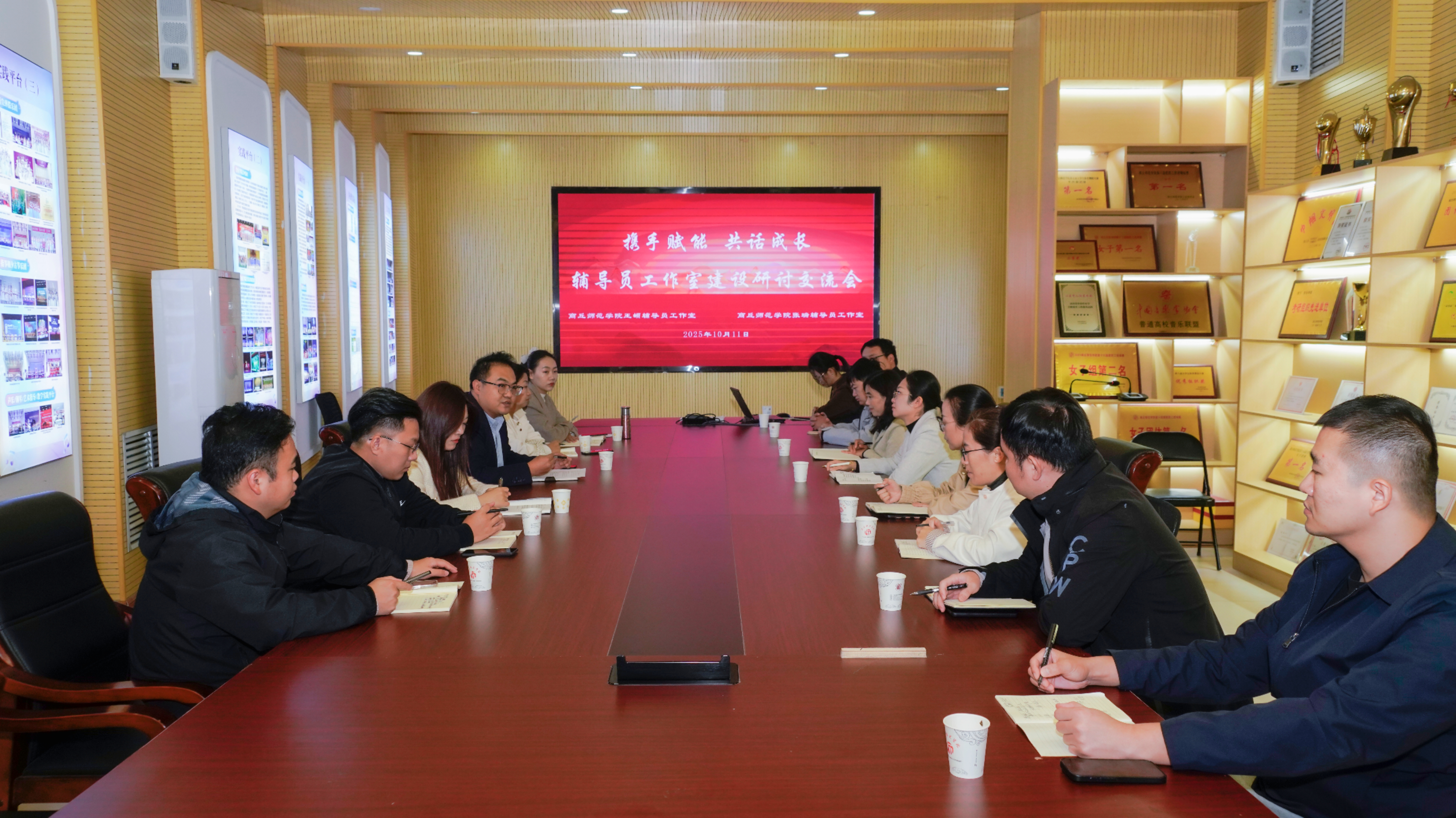 为深入推进辅导员队伍专业化、职业化建设,共享工作室建设经验,2025年10月11日,以“携手赋能 共话成长”为主题的辅导员工作室建设研讨交流会在音乐学院艺术展厅成功举办。bv1946伟德王頔辅导员工作室、张瑞辅导员工作室全体成员参会,共话育人心得,共绘成长蓝图。