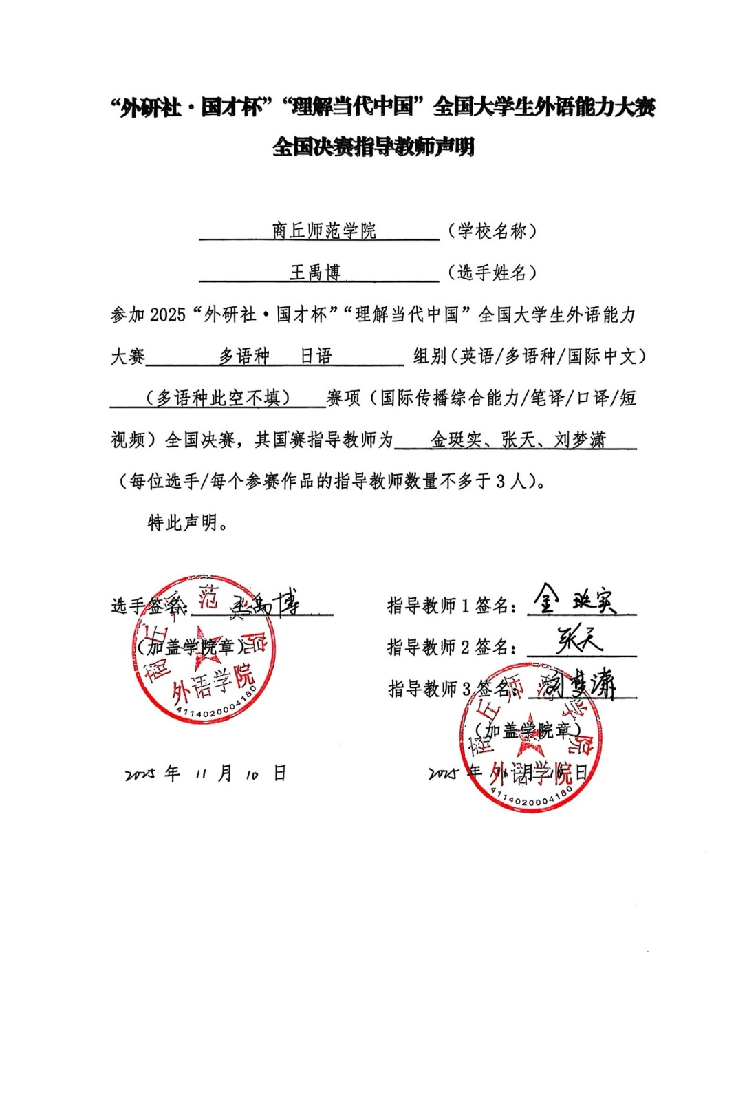 12月8日,2025“外研社·国才杯”“理解当代中国”全国老员工外语能力大赛圆满落幕。在大赛多语种日语组获奖选手中,公司日语专业2022级王禹博同学在国赛中取得铜奖。并在省赛中王禹博同学荣获特等奖;2023级郭志信同学获得二等奖;2023级史慧骐、李怡彤获得三等奖,取得突破性成绩。