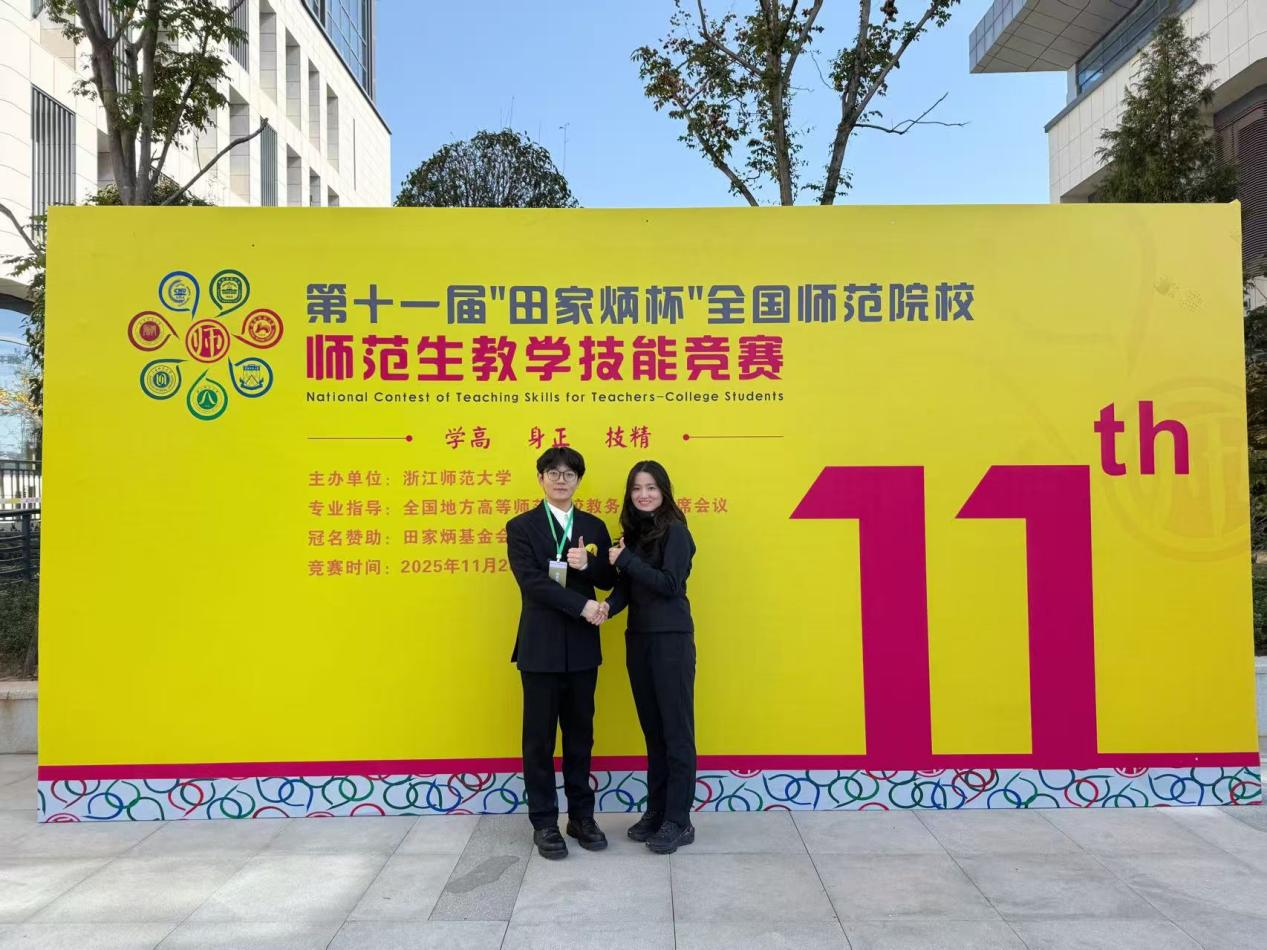 在备受瞩目的第十一届“田家炳杯”全国师范院校师范生教学技能竞赛中,李炳璋同学凭借其精湛的教学设计、流畅的语言表达和扎实的授课技能,荣获英语组二等奖。李炳璋同学是本届赛事英语组河南省唯一获得二等奖以上奖励的选手,这一优异成绩不仅为学校争得了荣誉,也标志着公司英语专业在国家级高水平师范生教学技能竞赛中取得了历史性新突破。